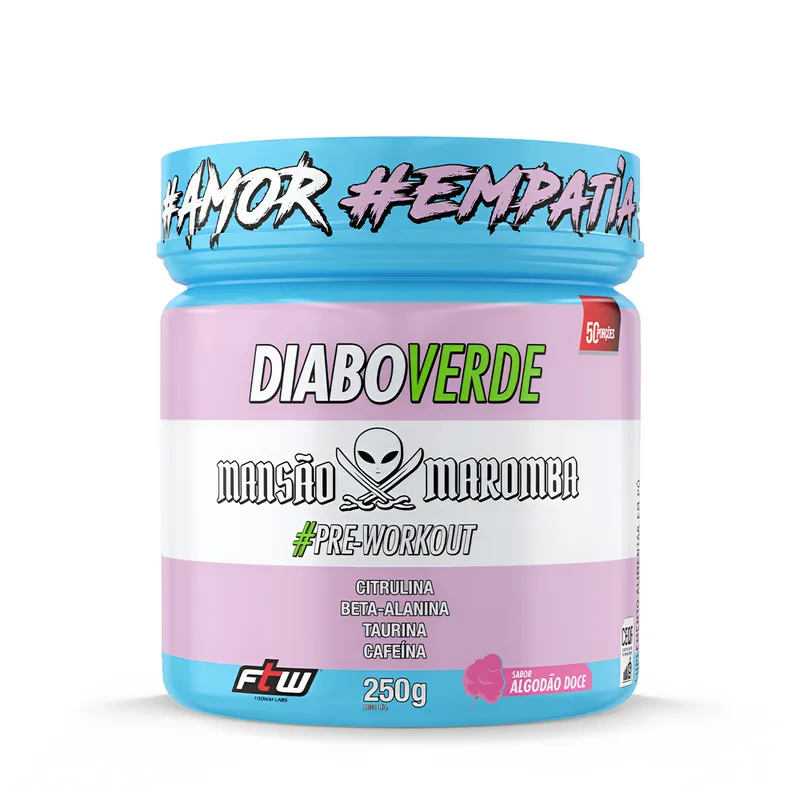 O FTW DIABO VERDE PRE WORKOUT 250G ALGODÃO DOCE é o aliado perfeito para potencializar seus treinos e ajudar você a alcançar resultados incríveis em sua jornada fitness. Com um sabor surpreendente de algodão doce, esse pré-treino não só envolve seu paladar em uma experiência única, como também fornece toda a energia e disposição necessárias para enfrentar os desafios do dia a dia e das atividades físicas. Ideal para aqueles que buscam um aumento de performance, foco e resistência, o FTW Diabo Verde é a escolha certa antes de encarar suas rotina de exercícios.