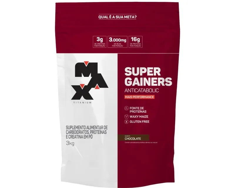 | Produto | MAX TITANIUM SUPER GAINERS REFIL 3KG CHOCOLATE |